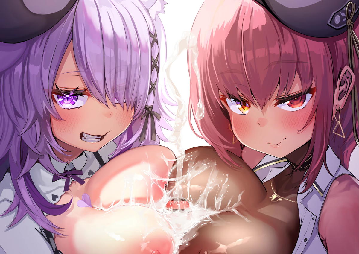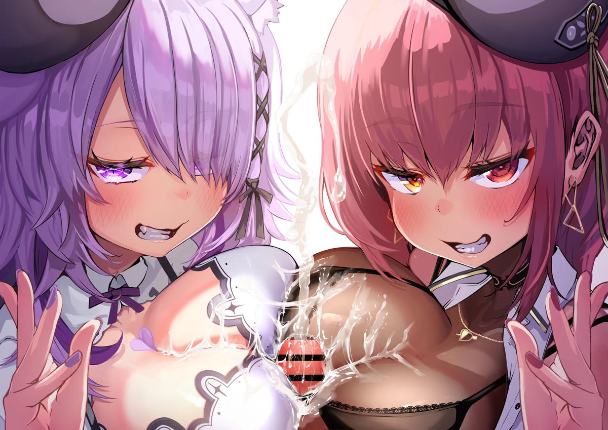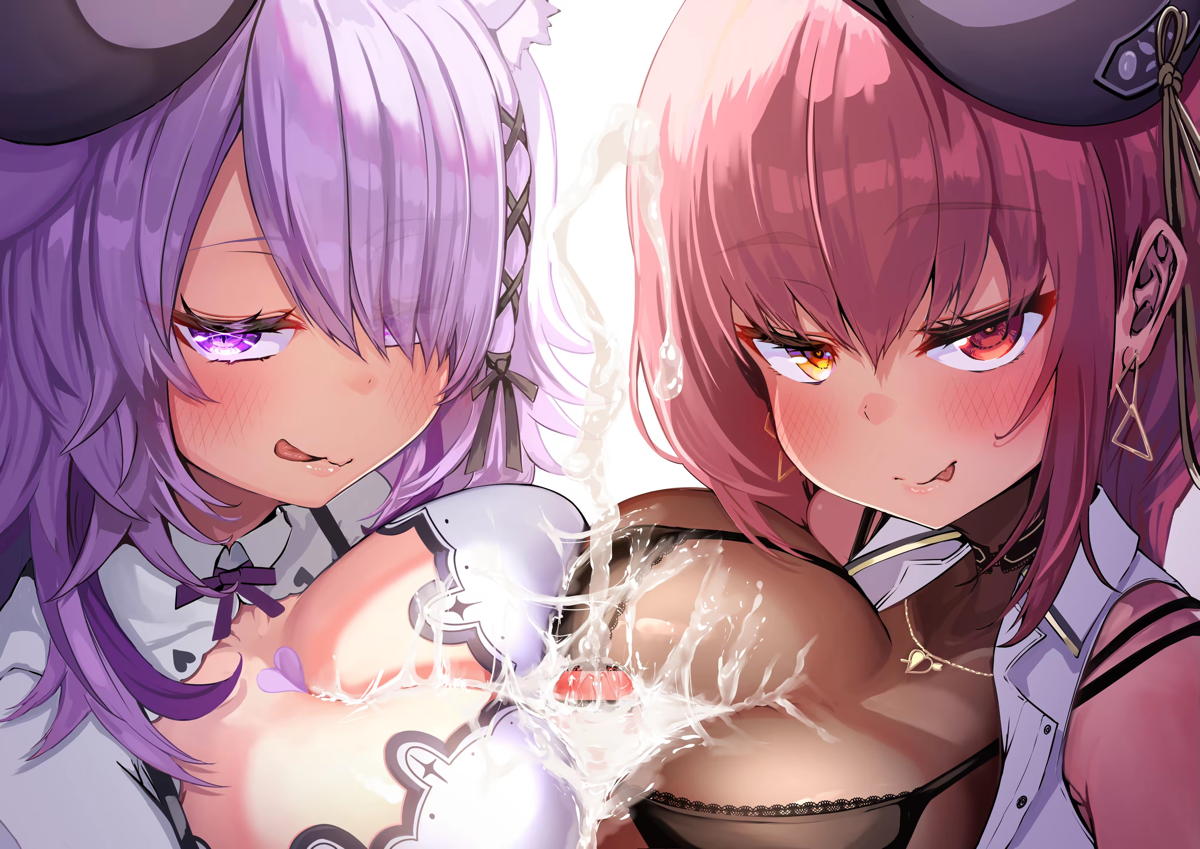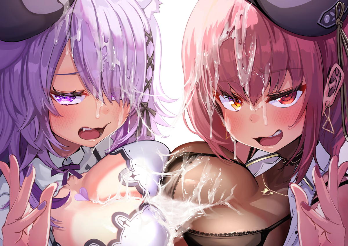 バーチャルYouTuber マリン&おかゆがWパイズリして顔射される!!
